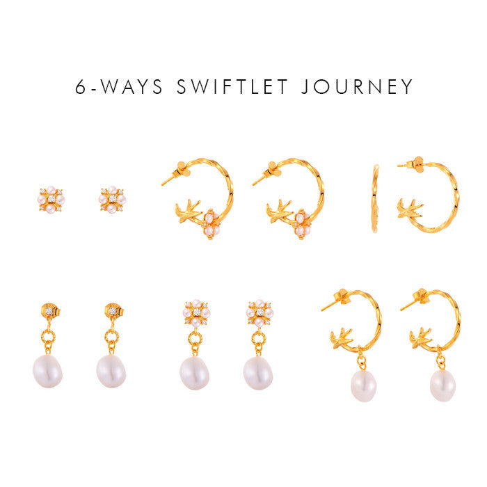 Combining Swiftlet Drop Earring and Swiftlet Hoop Earring, you can achieve 6 different ways of wearing this earring.
