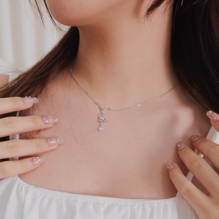 Feel the flutter of a butterfly's wings as you wear the Starry NaBi necklace around your neck. The pendant, shaped like a butterfly with moonstone accents, embodies the elegance and whimsy of these enchanting creatures. Gift this to your loved ones at the time when the air is filled with the promise of miracles where the "NaBi" Necklace captures the special sparkle, fluttering into your heart.