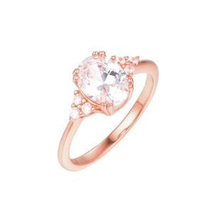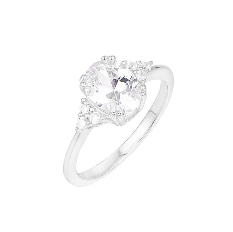 Be enchanted by the beauty of sparkles in Talia ring. An oval cut stone surrounded with 3 round cut diamond on each side. Stack above Atelier ring for an elevated look!