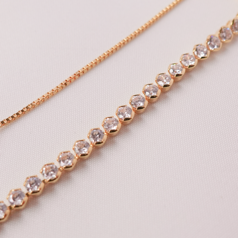 The only timeless, dainty and sparkly adjustable bracelet you need. Pair it with our Leila Huggies to complete your look!