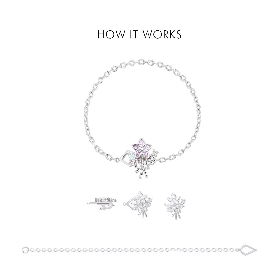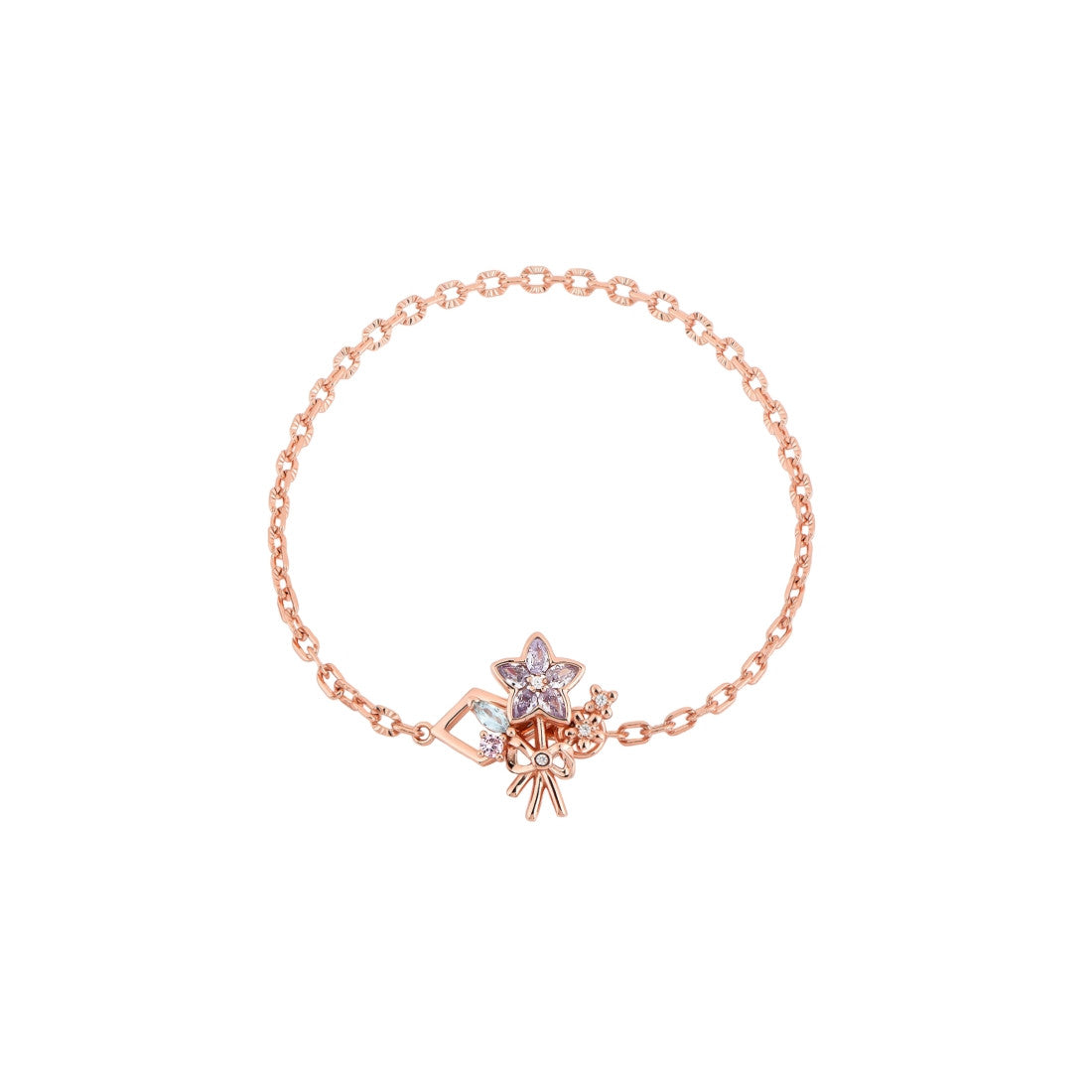 Sylvia bracelet continues the collection's flowing design, its delicate links resembles the hold of your loved ones. The addition of the bouquet charm clip transforms it into a garden of eternal blooms - a love token that, unlike fresh flowers, will never fade.