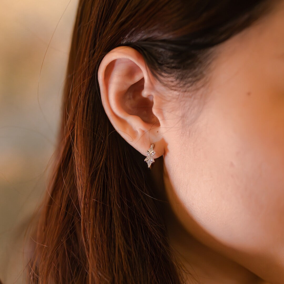 Small yet significant, Estelle Huggies’ subtle sparkle catches the light with every turn, adding a constellation of tiny stars to frame your face.