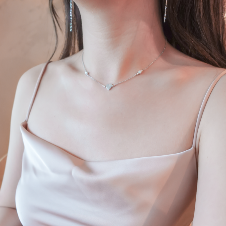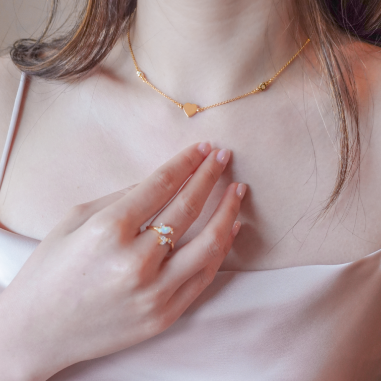 Opal symbolize maternal love, making it the perfect gift for moms. The constant flashing fire of the opal at the sides of a heart pendant reflect the constant spark of love for the wearer. The simple and minimalist design of Jadore necklace can be worn daily with any outfits. It is crafted at a shorter length where you can layer it above other necklaces to curate your own stack.