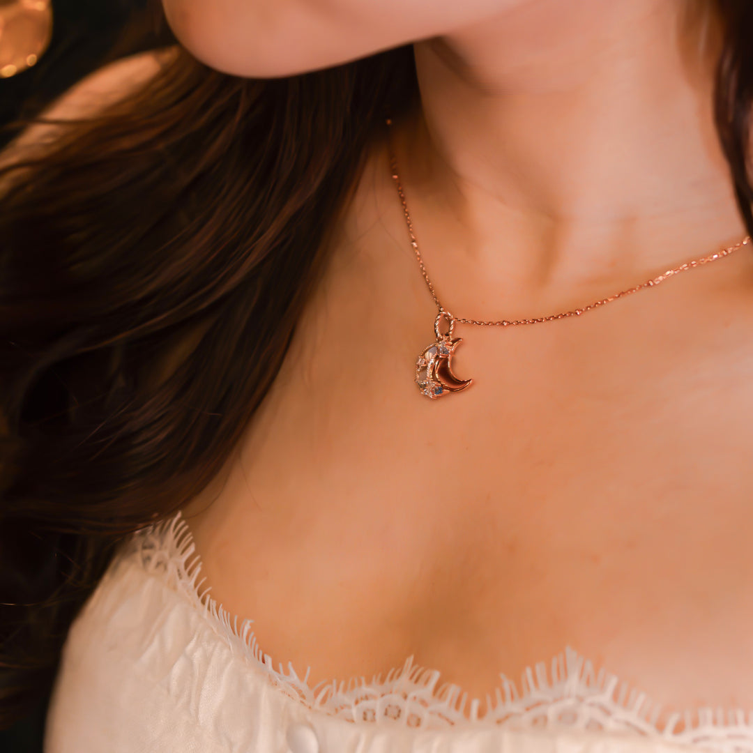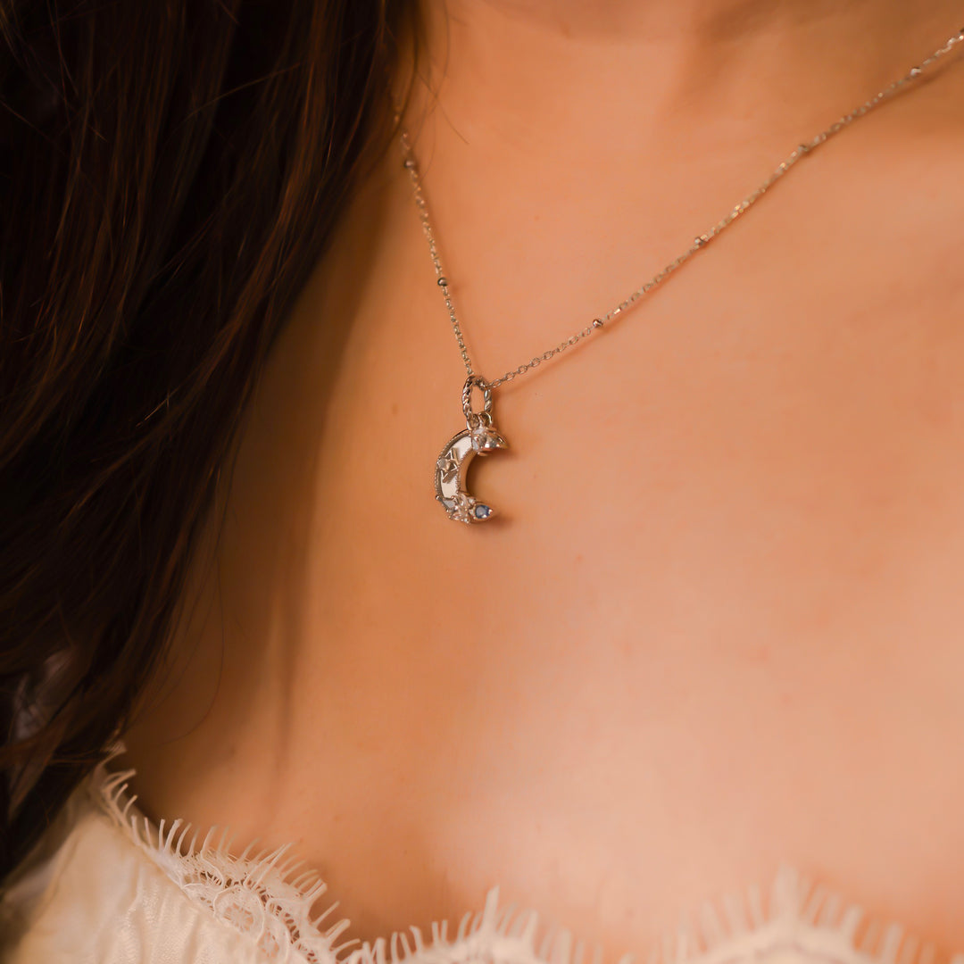 Like moonlight cascading across still waters, the Luna Necklace creates a stunning visual journey. The front features a brilliant gemstone that catches light like moonbeams on a clear night, while the back reveals a secret - a thoughtfully designed metal surface waiting to be engraved with your personal story.