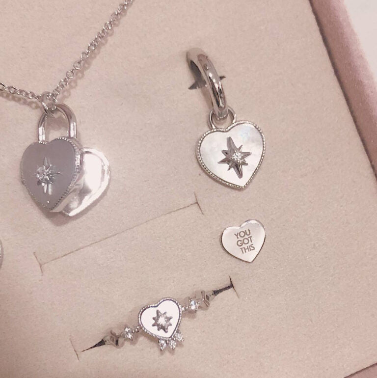 Match the necklace with Sweetheart Lovela Huggies Earring and Ring for the perfect gift for yourself or your loved ones on Valentine’s day and Mother’s day.